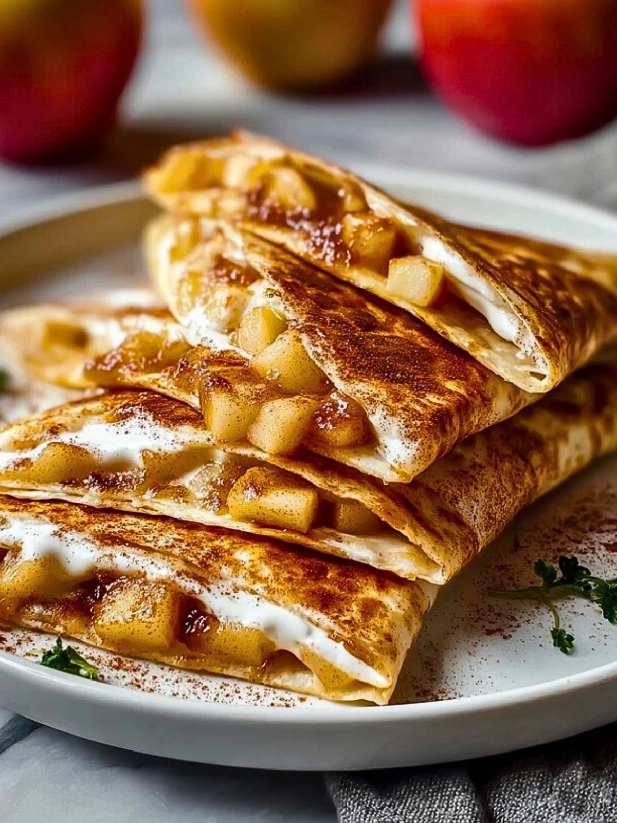 Saftige Äpfel, aromatischer Zimt und eine cremige Füllung: Diese Apfel-Zimt-Frühstücks-Quesadillas sind der perfekte Start in den Tag oder ein süßer Snack am Nachmittag. Der knusprig gebratene Teig umhüllt eine köstliche Mischung aus warmen Äpfeln, feiner Frischkäsecreme und einem Hauch von Vanille – ein Traum für alle Frühstücksliebhaber!