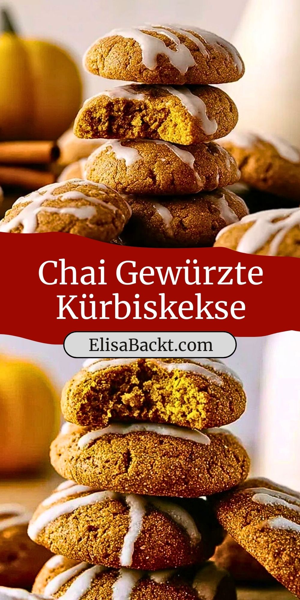 Wunderbar weiche Kürbiskekse mit wärmender Chai-Gewürzmischung und feinem Zuckerguss. Perfekt für den Herbst – ein Genuss zu Tee oder Kaffee und herrlich aromatisch!