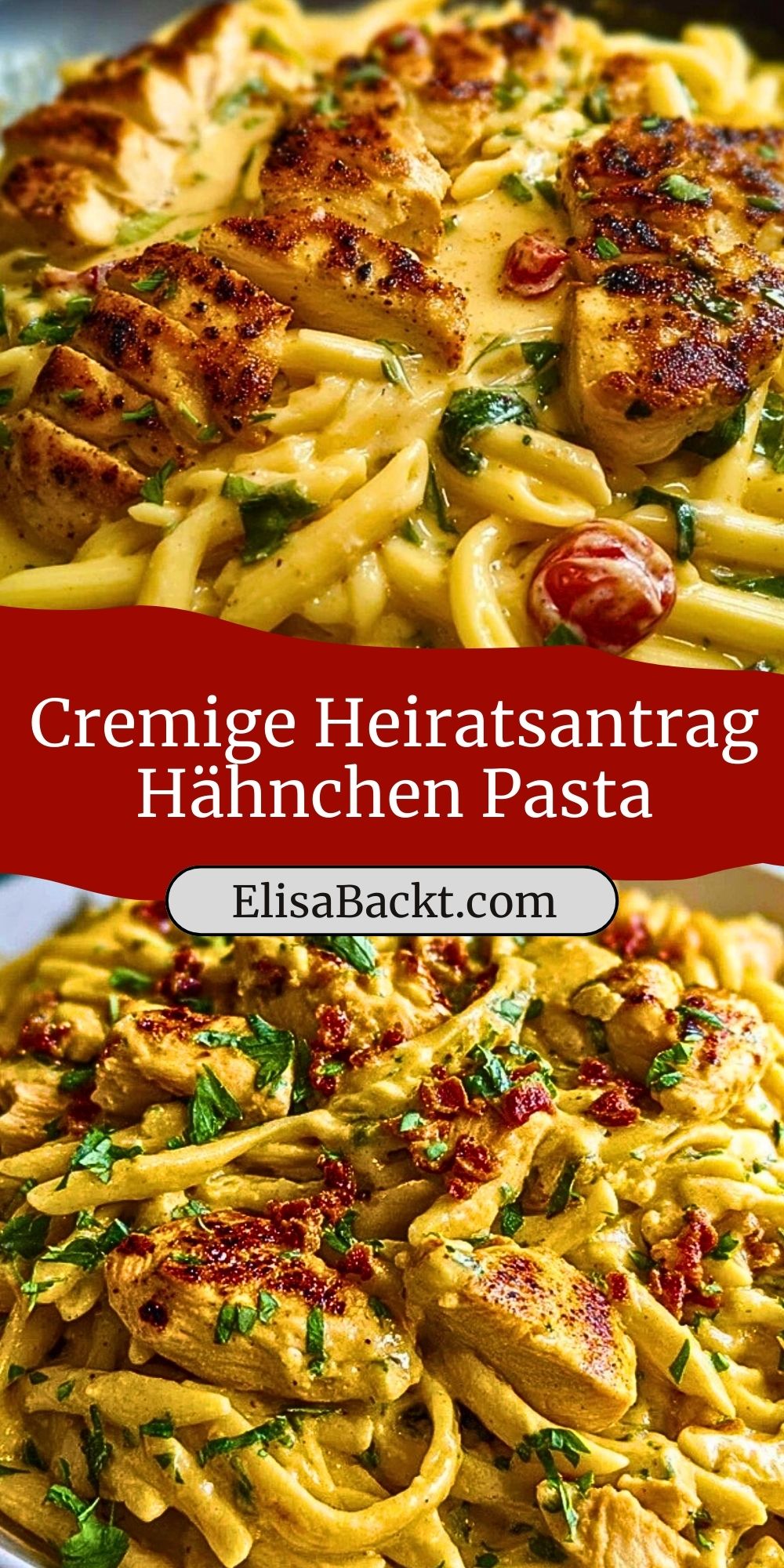 Cremige Heiratsantrag Hähnchen Pasta: Zarte Hähnchenbrust auf cremiger Pasta mit getrockneten Tomaten und Parmesan – ein Gericht, das Herz und Gaumen verführt! Perfekt für romantische Abende oder wenn du einfach Lust auf etwas Besonderes hast.