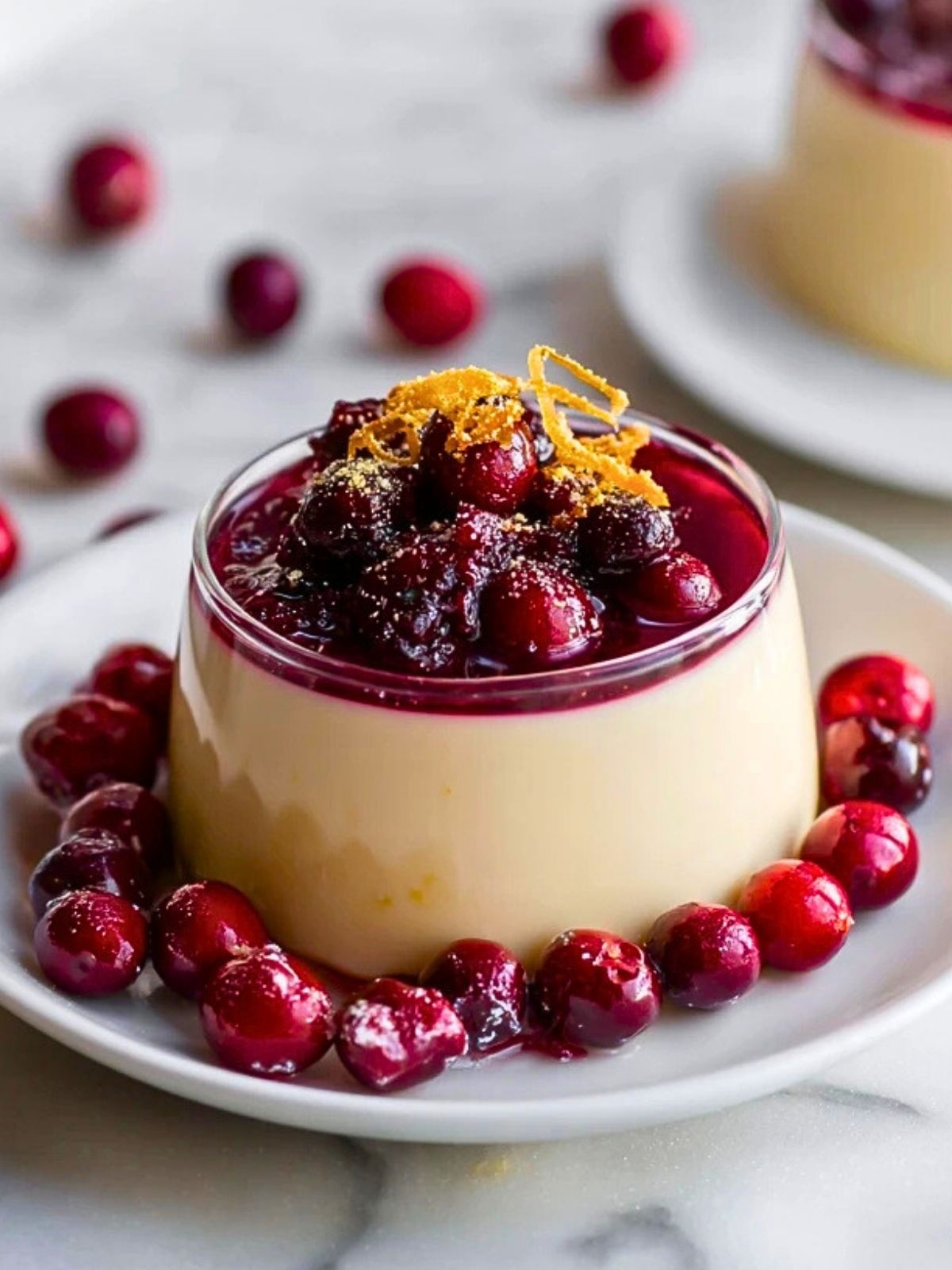 Eierlikör Panna Cotta mit alkoholisiertem Preiselbeersauce