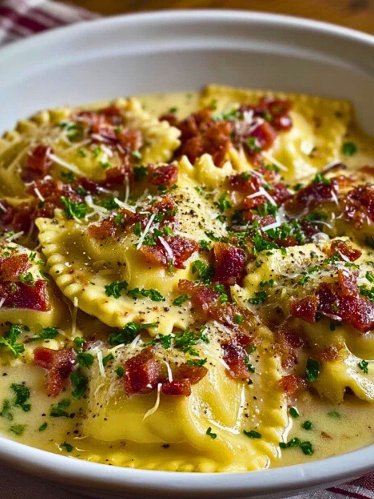 Einfache Ravioli Carbonara nach Olive Garden-Art