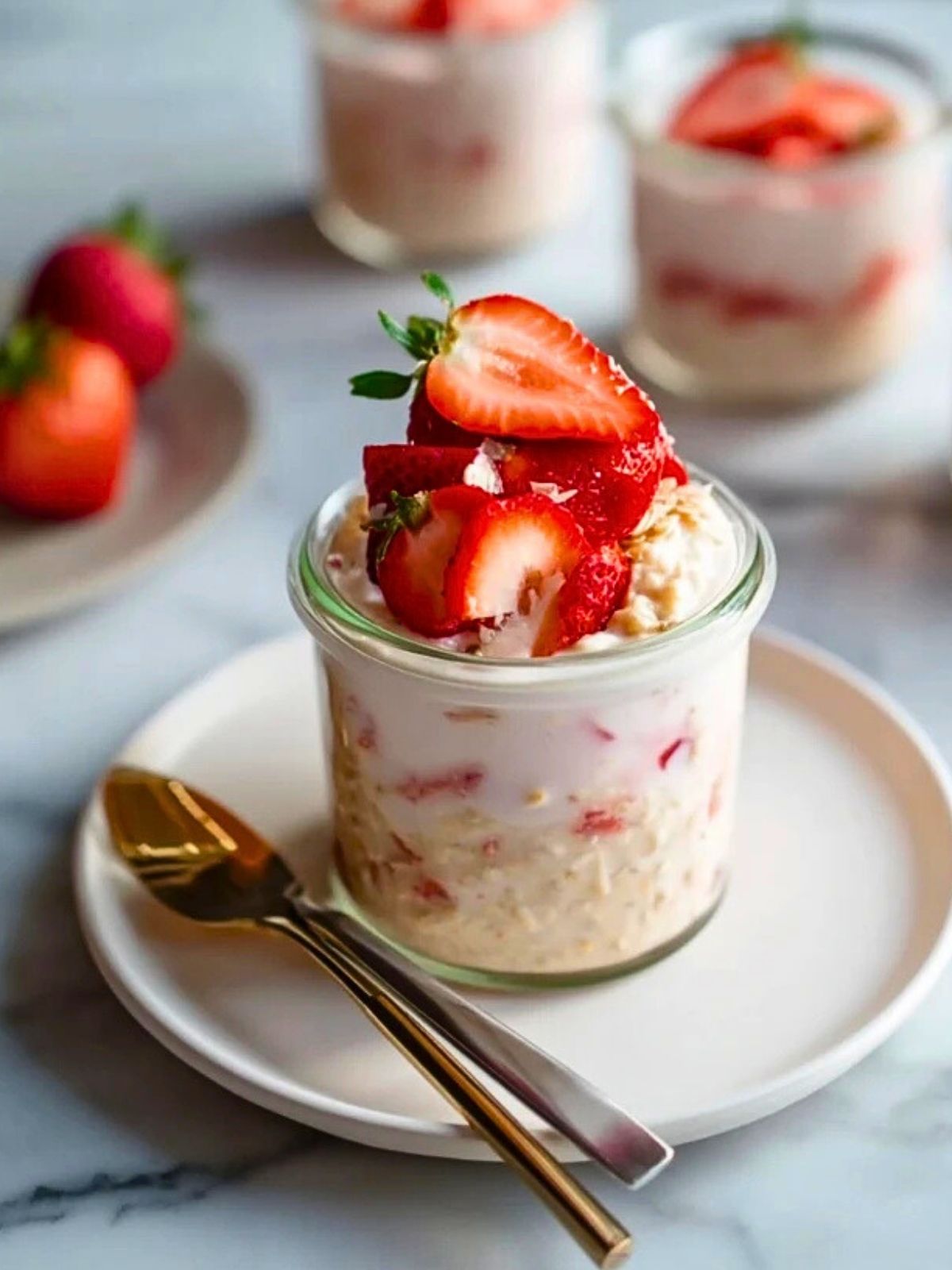 Keywords: Overnight Oats, Erdbeeren, Cheesecake, Frühstück, Meal Prep