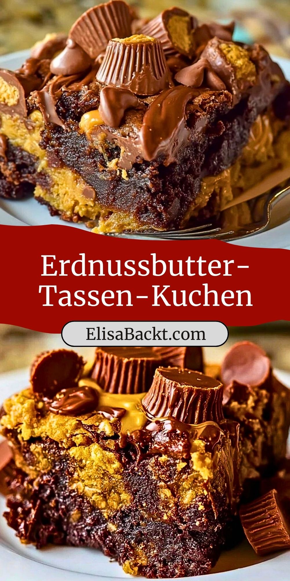 Der Erdnussbutter-Tassen-Kuchen ist ein saftiger Schokoladenkuchen mit cremiger Erdnussbutterschicht, Karamell und vielen Mini-Erdnussbutter-Pralinen – ein echtes Highlight für Schokoladen- und Nussliebhaber! Schnell gemacht und optisch ein Hingucker für jeden Anlass.