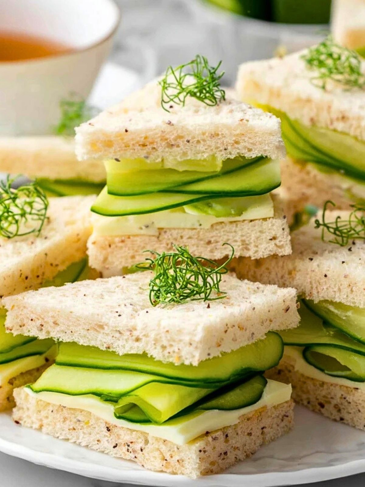 Zarte Sandwiches mit cremigem Frischkäse, frischer Gurke und feinen Kräutern – perfekt für Brunch, Picknick oder als leichter Snack. In wenigen Minuten zubereitet und immer ein Genuss.