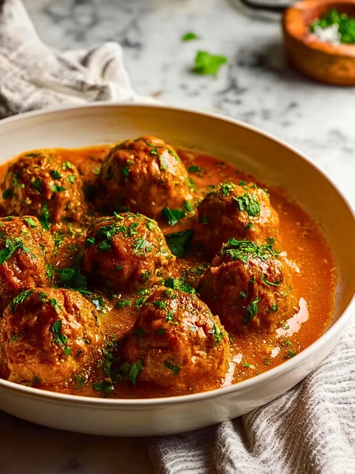 Diese cremigen Fleischbällchen mit Tomaten-Sahnesoße sind das ultimative Wohlfühlgericht für jede Gelegenheit. Sie sind wunderbar zart, aromatisch gewürzt und begeistern als festliches Hauptgericht genauso wie beim schnellen Abendessen unter der Woche.