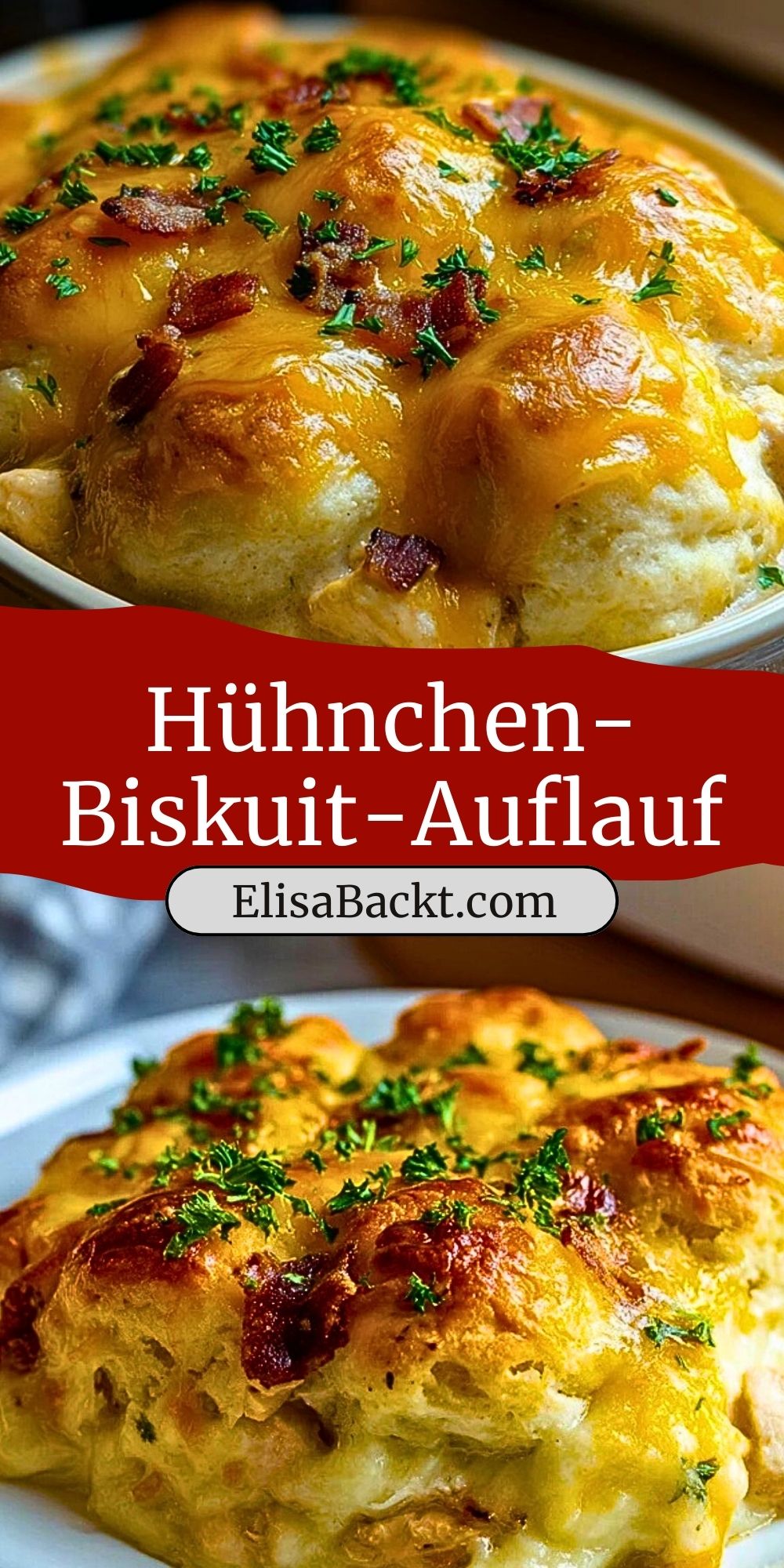 Ein herzhafter Auflauf-Klassiker mit zarten Hähnchenstücken, cremiger Sauce, knusprigen Biscuits und würziger Käsekruste – einfaches Soulfood, das die ganze Familie begeistert!