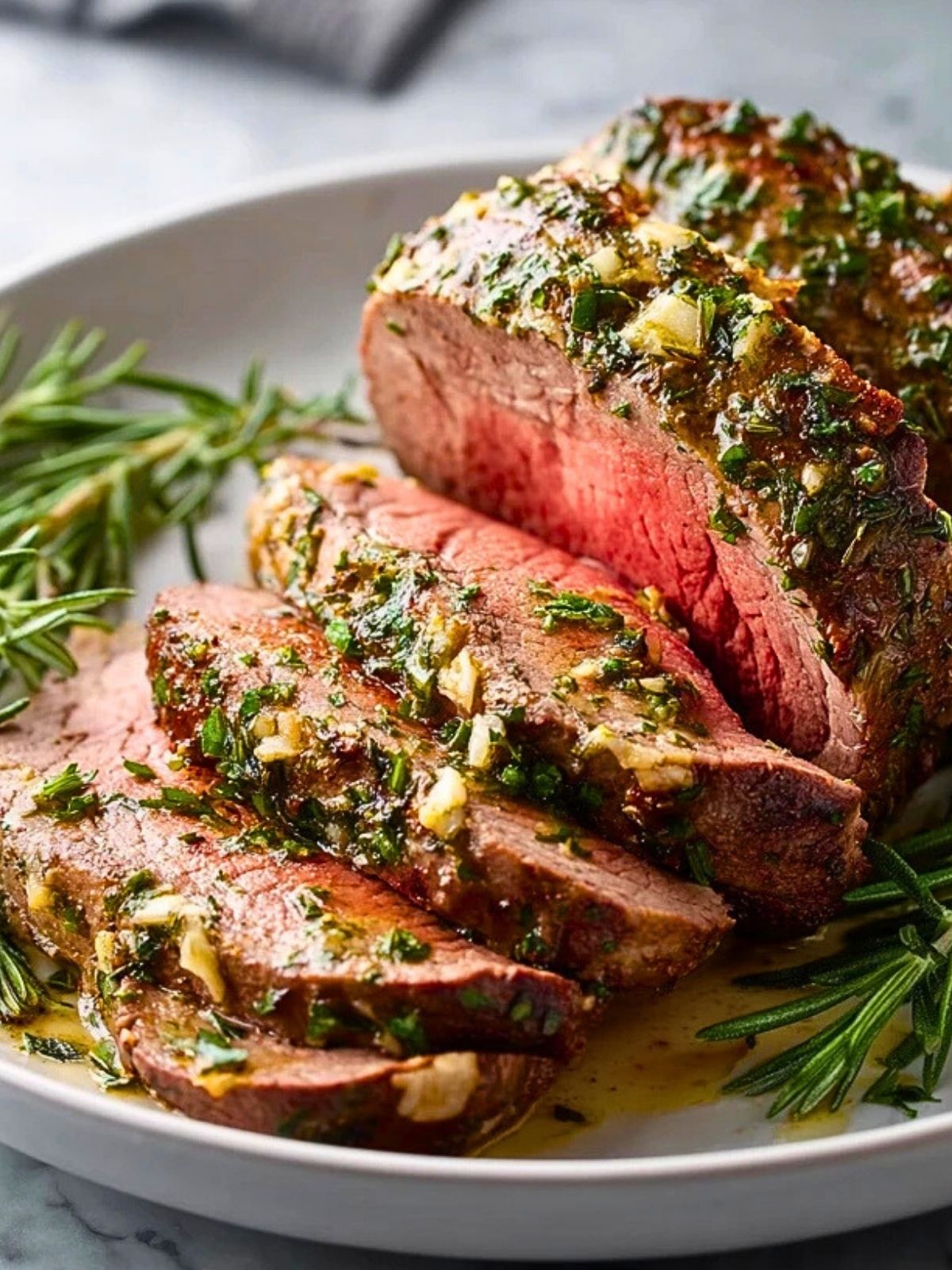 Ein zartes Rinderfilet, das von würziger Knoblauch-Kräuterbutter umhüllt und perfekt gegart wird – ein Highlight für jedes Festessen oder den besonderen Sonntagstisch. Saftig, aromatisch und einfach zuzubereiten.