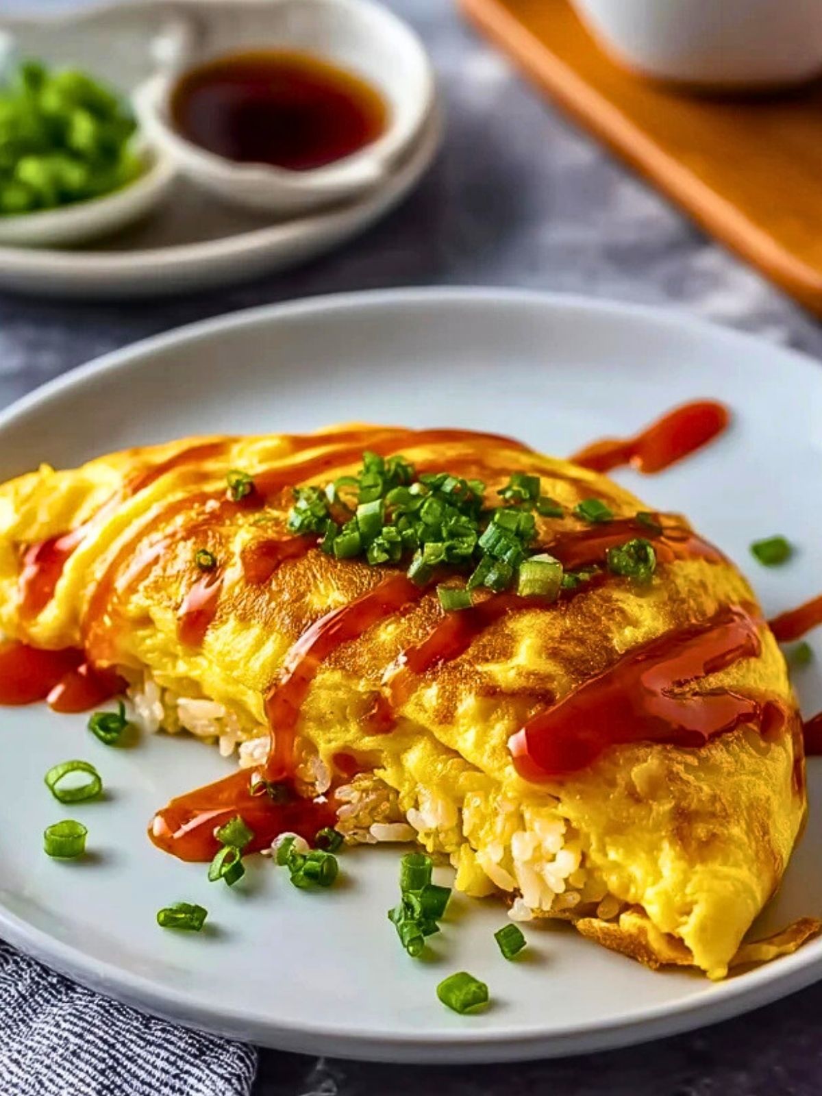 Verfeinere das Omelette mit Saucen wie Sojasauce, Sriracha oder Kräuterquark für den Extrakick an Geschmack.