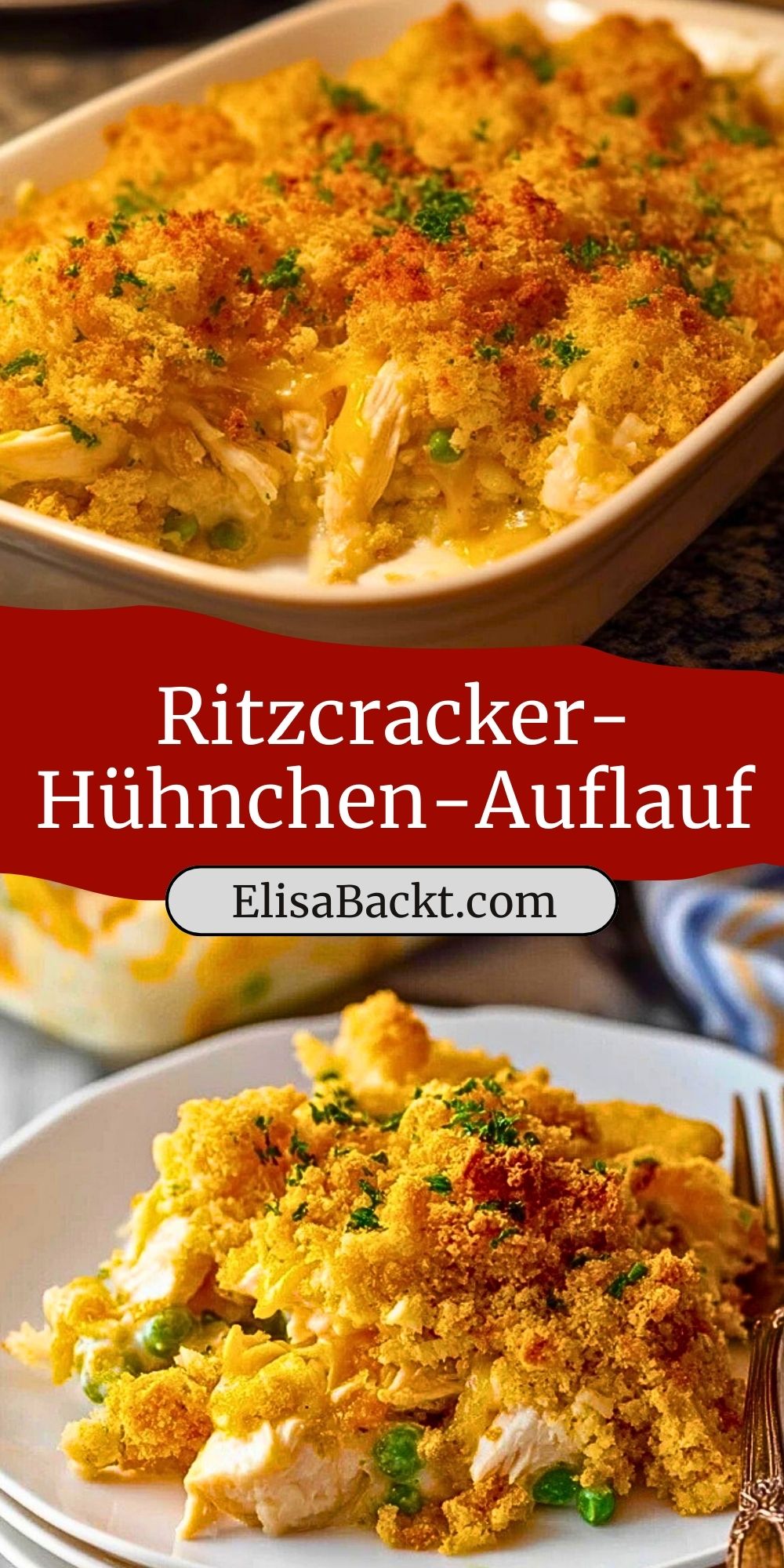 Cremiger Ritzcracker-Hühnchen-Auflauf mit zartem Hähnchenfleisch, einer würzigen, schmelzenden Käsesauce und einer goldgelben, knusprigen Butter-Cracker-Kruste. Perfekt für die ganze Familie und ideal als Wohlfühlessen unter der Woche oder am Wochenende!
