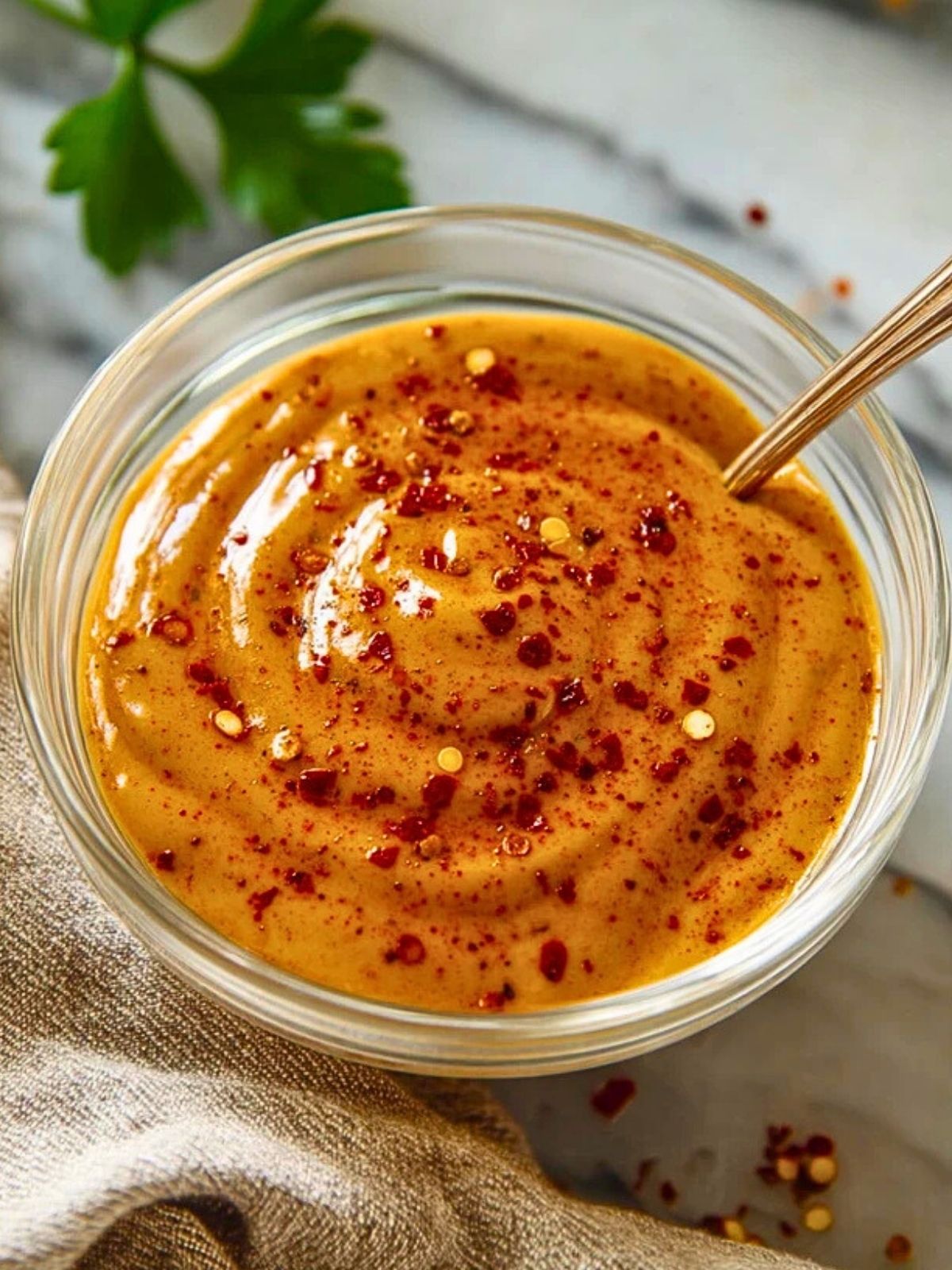Diese scharfe, cremige Sauce mit geräuchertem Paprikapulver, Knoblauch und frischem Zitronensaft passt perfekt zu Pommes, Burgern, Grillfleisch oder Gemüse! Sie ist schnell angerührt, schön pikant und bleibt im Kühlschrank mehrere Tage frisch. Ideal für alle, die es würzig lieben!