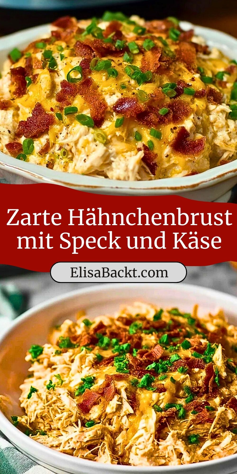 Das Beste: Die Zubereitung erfolgt fast wie von selbst im Slow Cooker oder im Backofen. Während das Hähnchen langsam gart, entwickeln sich Aromen und die Konsistenz bleibt herrlich zart. Und natürlich: der goldbraune Käse, der alles überzieht, und der herzhafte Speck sorgen für den absoluten Genussfaktor!