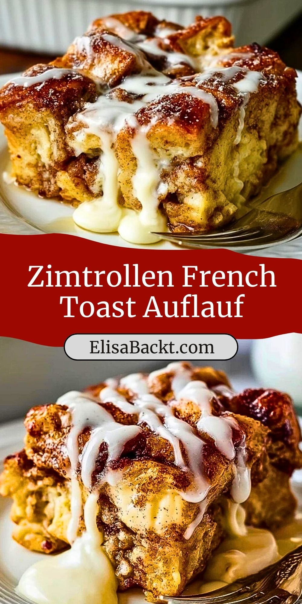 Außerdem ist das Rezept herrlich flexibel: Du kannst fertige Zimtrollen verwenden, selbstgebackene Röllchen verwerten, das Ganze über Nacht im Kühlschrank durchziehen lassen oder ganz spontan direkt backen. Mit Vanilleglasur, Schlagsahne oder einer Kugel Eis wird aus dem Frühstück sogar ein dekadentes Dessert.